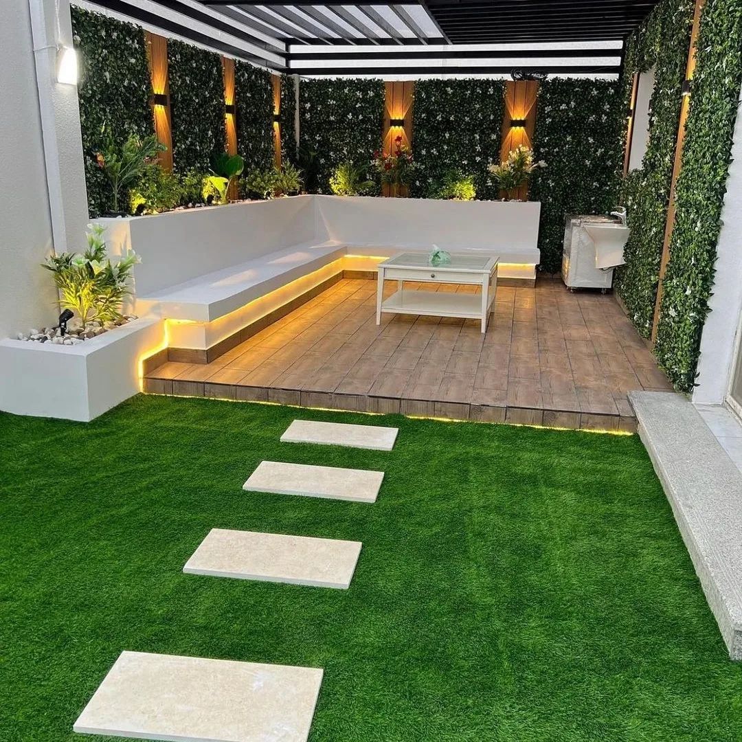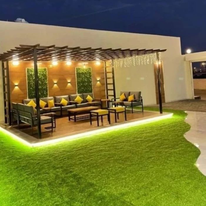• العشب الطبيعي: يمنح إحساساً حقيقياً بالطبيعة، لكنه يحتاج إلى عناية وري منتظم.